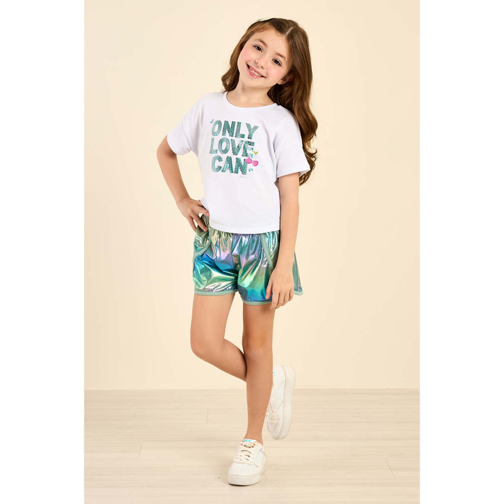 Conjunto Infantil Menina Short Holográfico Elian Branco