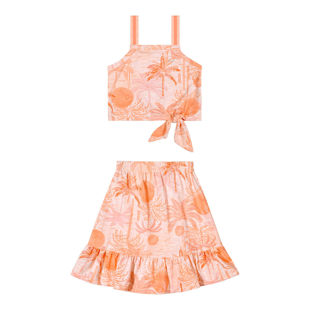 Conjunto Infantil Menina Tropical Amarração Elian Laranja
