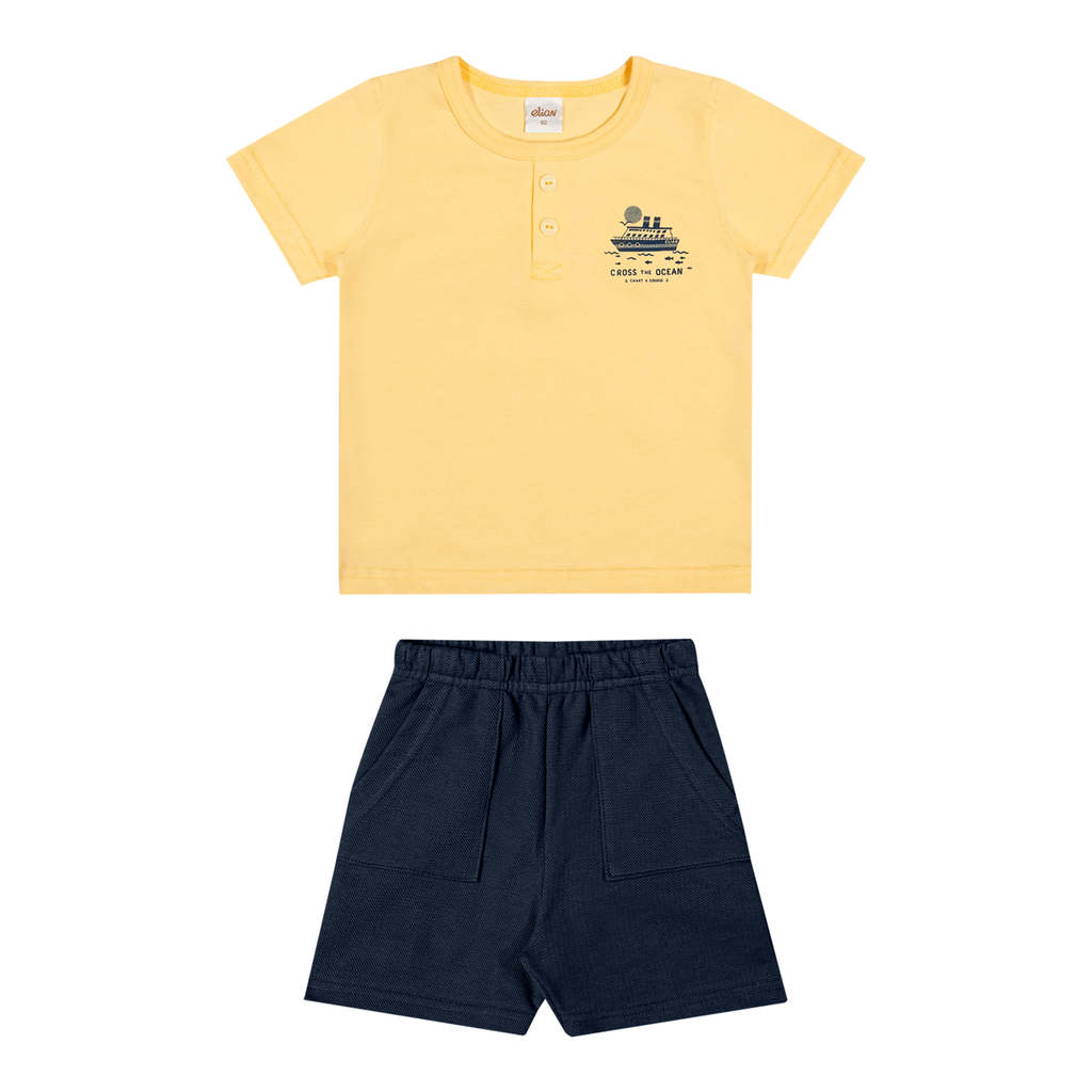 Conjunto Infantil Menino Botões Decorativos Elian Amarelo