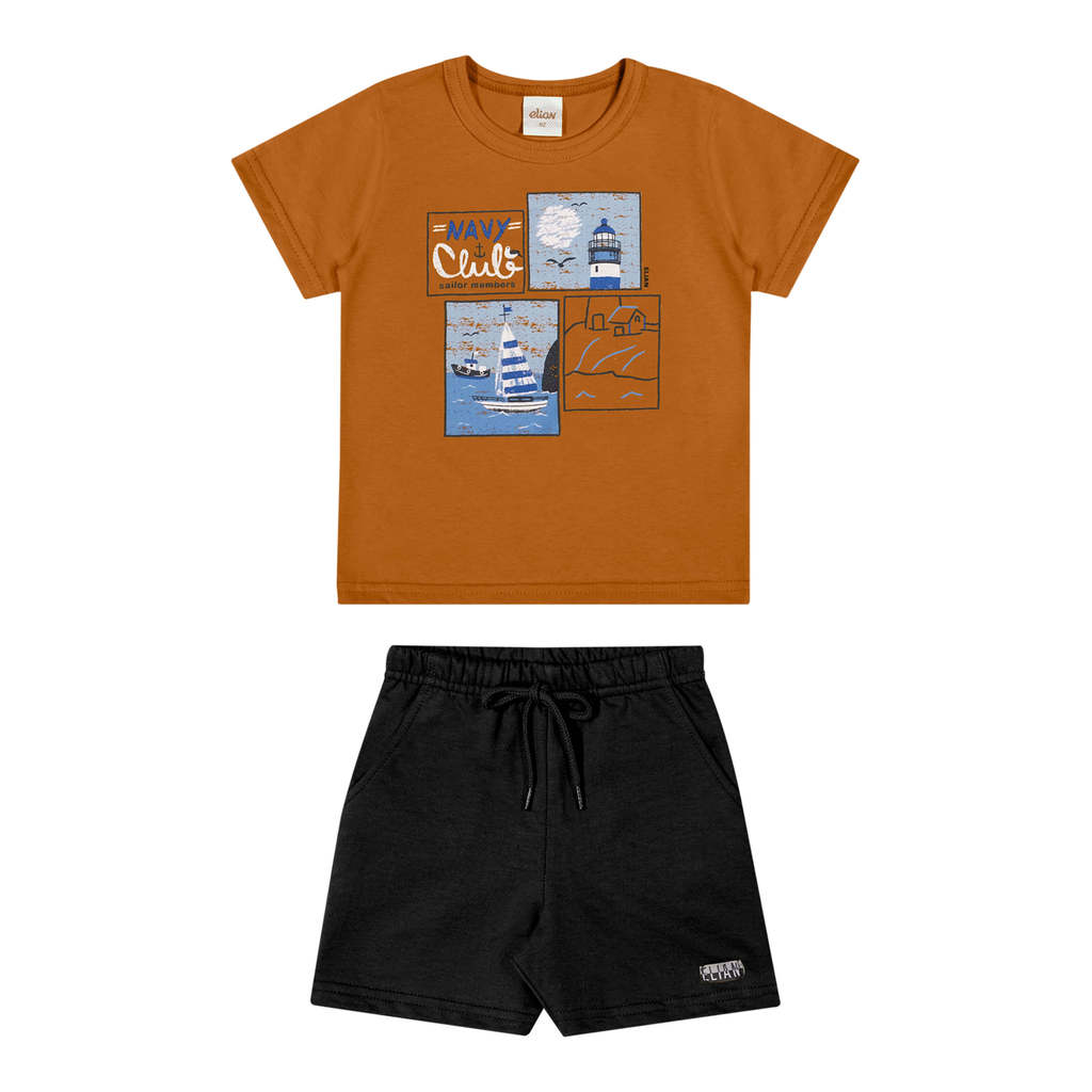 Conjunto Infantil Menino Desenho Navy Elian Marrom
