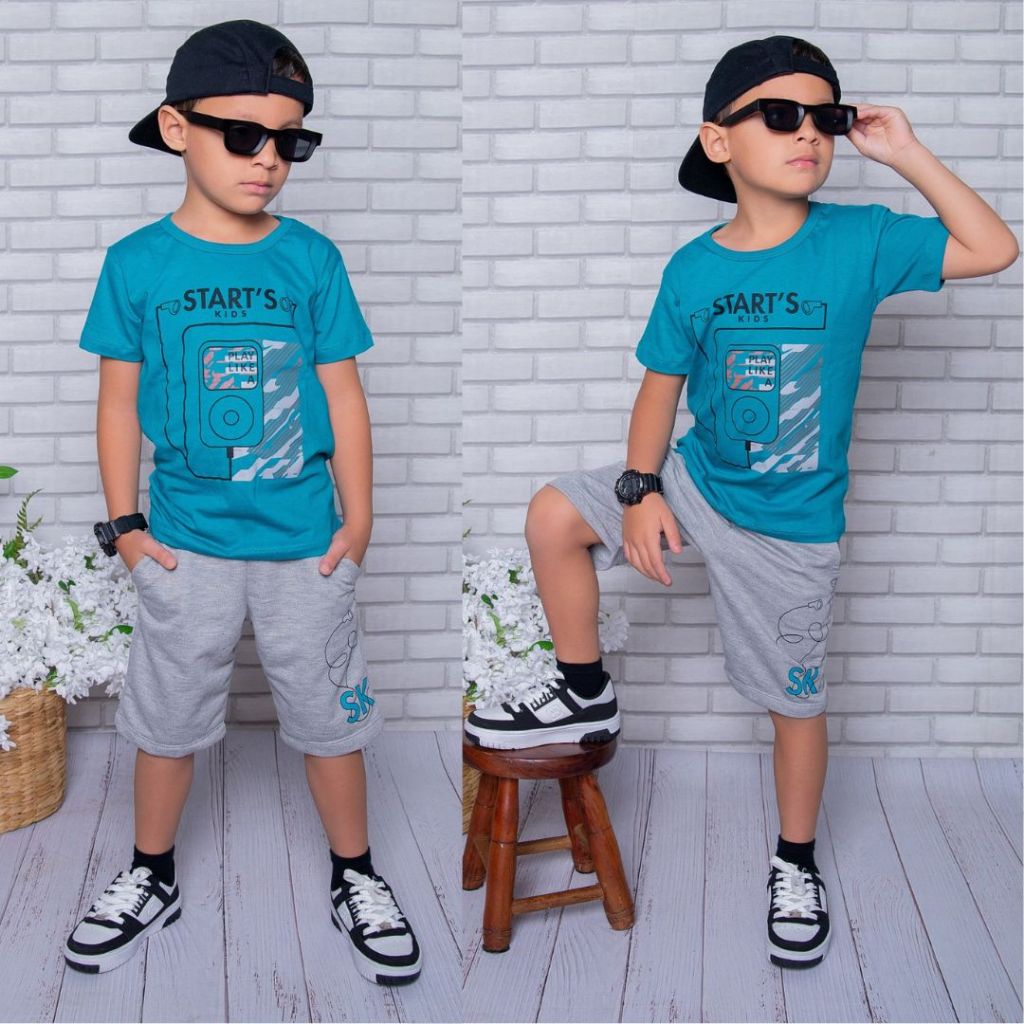 Conjunto Infantil Menino Juvenil Lançamento Camisa Bermuda Roupa de Criança Veste 2 ao 14anos