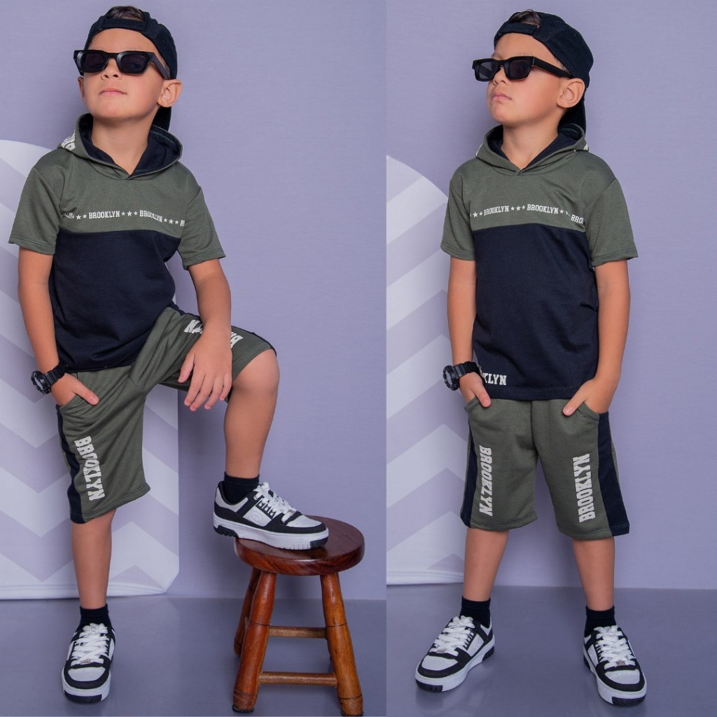 Conjunto Infantil Menino Lançamento Verão Camisa 100% Algodão e Bermuda Veste do 2 ao 14 anos