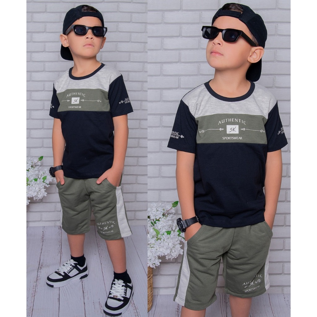 Conjunto Infantil Menino Lançamento Verão Camisa 100% Algodão e Bermuda Veste do 2 ao 14 anos