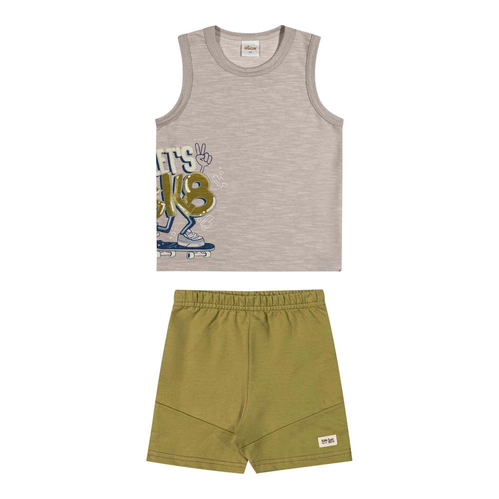 Combinando atitude e conforto, o Conjunto Elian é composto por regata em meia malha flamê e bermuda em moletom sem felpa. A regata possui modelagem tradicional e estampa na lateral com a frase "Let’s SK8", trazendo um toque descolado e moderno para o visual. Já a bermuda conta com elástico no cós e detalhes em recortes. Ideal para momentos de lazer e passeios, aposte nesse look cheio de personalidade para o dia a dia!Detalhes da peça: • Conjunto composto por regata e bermuda • Feito em meia malha flamê e moletom sem felpa • Possui estampa de skate • Possui elástico no cós • Possui detalhes em recorte • Ideal para momentos de lazer e passeios