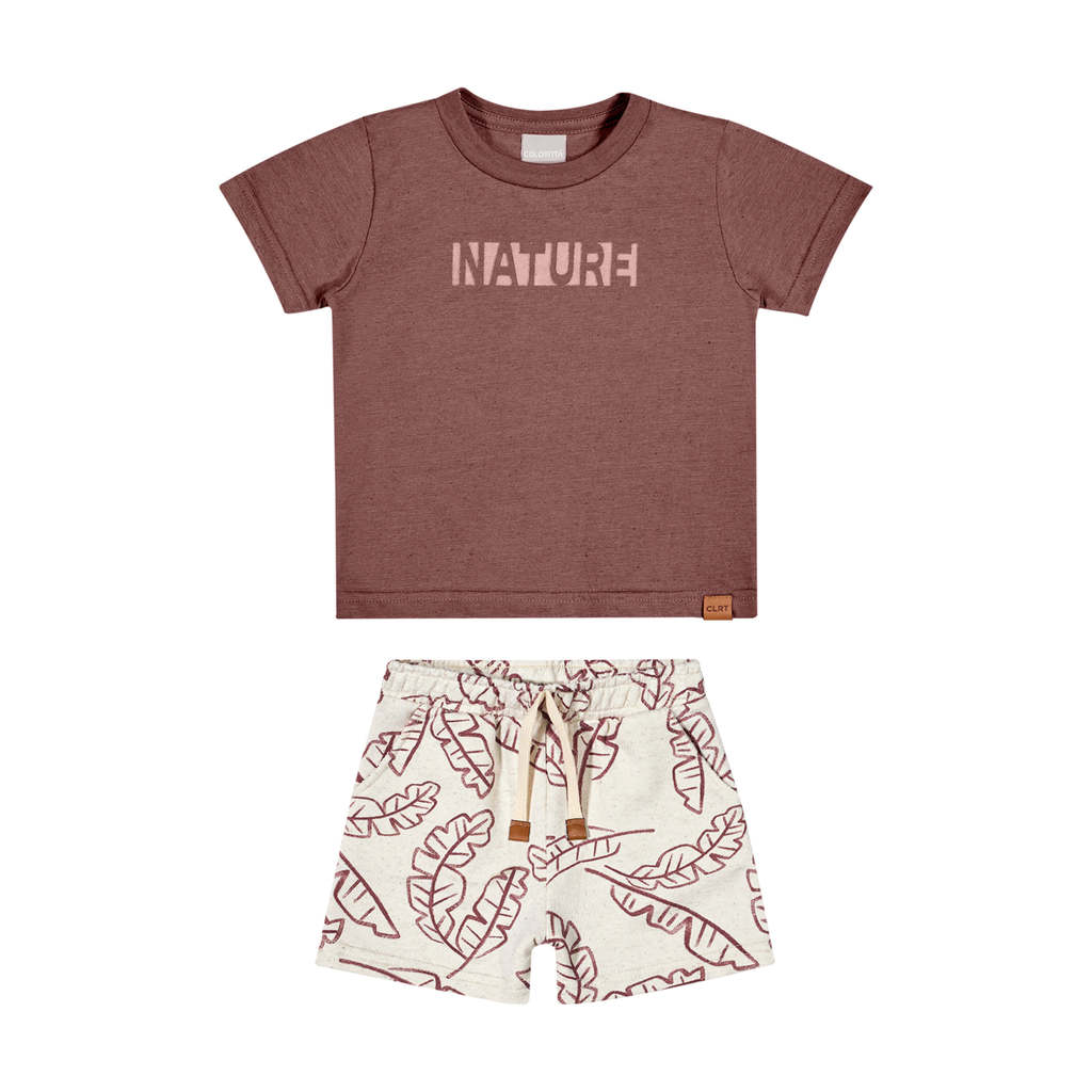 O Conjunto Colorittá é composto por camiseta em malha linho e bermuda em moletom eco linho estampado. A camiseta de mangas curtas possui estampa frontal com a palavra "Nature" e detalhes flocados, que dão um toque aveludado e charmoso à peça. Já a bermuda conta com elástico no cós, bolsos laterais e estampa de folhas tropicais, transmitindo a essência do verão. Ideal para passeios e momentos de lazer, esse conjunto é uma escolha cheia de personalidade para os dias mais quentes. Aposte!Detalhes da peça: • Conjunto composto por camiseta e bermuda • Feito em malha linho e moletom eco linho estampado • Possui mangas curtas • Estampa tropical com folhas • Detalhes aveludados • Elástico no cós • Possui bolsos • Ideal para passeios e momentos de lazer