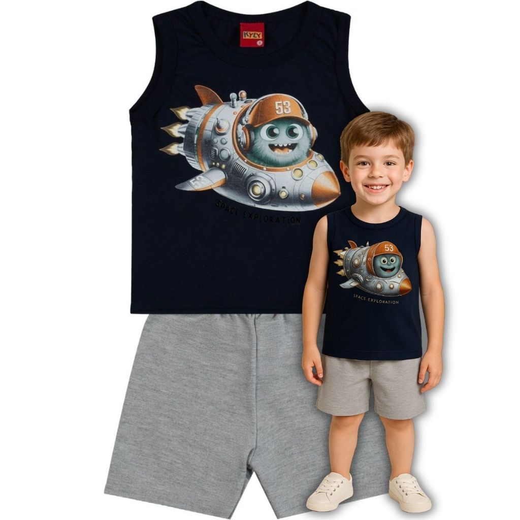 Conjunto Infantil Menino Regata e Bermuda em Moletom Sem Felpa Leve KYLY 1001057