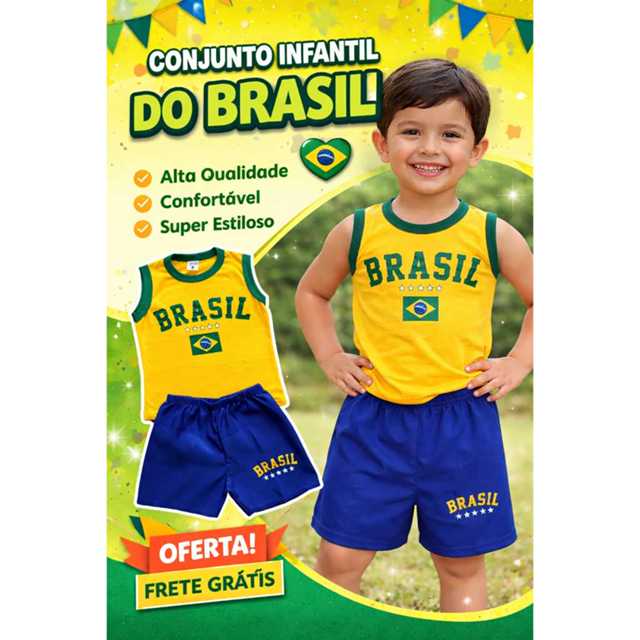 | Conjunto Infantil Menino Tema Brasil - Camiseta e Short Roupa Infan... este produto | R$ 24,90 | — | 5.0/5 | — |