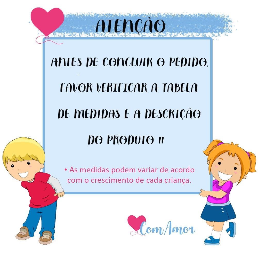 Conjunto Infantil Moletom - Mafi Kids - DESCRIÇÃO DO PRODUTO Conjunto Infantil Moletom Peluciado DETALHES DO PRODUTO Conjunto infantil composto por um Casaco e uma Calça. Casaco Infantil confeccionada em moletom peluciado. Modelagem tradicional, manga longa. Estampa frontal, super divertida. Calça confeccionada em Moletom peluciado. Calça com modelagem tradicional. Barra e punhos em ribana. TABELA DE MEDIDAS CASACO 1- Toráx: 29cm / Comprimento: 36cm 2- Toráx: 31cm / Comprimento: 37cm 3- Toráx: 33cm / Comprimento: 39cm 4- Toráx: 34cm / Comprimento: 43cm 6- Toráx: 35cm / Comprimento: 45cm 8- Toráx: 37cm / Comprimento: 47cm 10- Toráx: 39cm / Comprimento: 48cm 12- Toráx: 41cm / Comprimento: 50cm CALÇA 1- Cintura: 20cm / Comprimento: 43cm 2- Cintura: 21cm / Comprimento: 46cm 3- Cintura: 22cm / Comprimento: 47cm 4- Cintura: 23cm / Comprimento: 64cm 6- Cintura: 25cm / Comprimento: 69cm 8- Cintura: 27cm / Comprimento: 70cm 10- Cintura: 28cm / Comprimento: 73cm 12- Cintura: 30cm / Comprimento: 75cm Características Gerais do Produto: • Cuidados com o produto: Não passar o ferro em cima da estampa,Cuidado ao utilizar secadora • Estação: Inverno • Faixa Etária: 6 à 7 anos • Gênero: Feminino