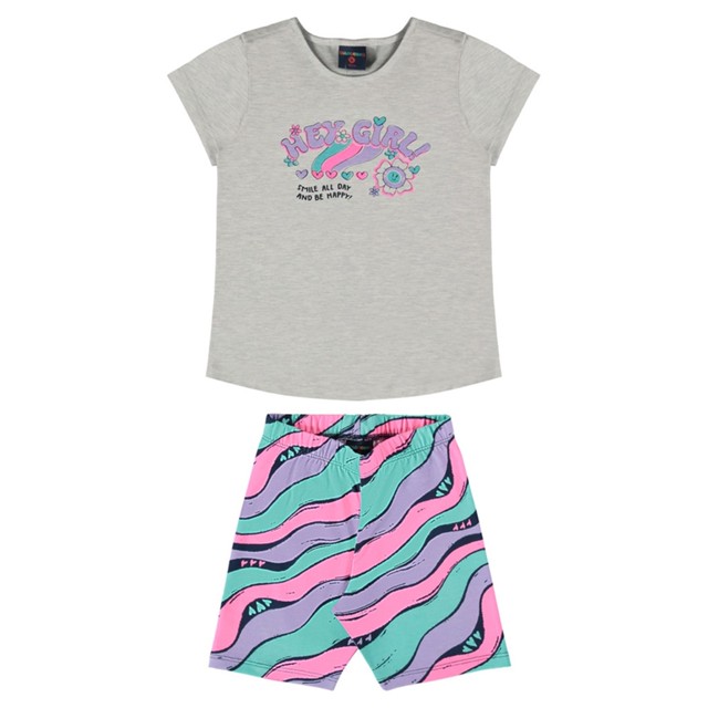 Conjunto infantil feminino composto por uma blusa e uma bermuda ciclista, perfeito para dias de diversão e conforto. A blusa, confeccionada em cotton, possui mangas curtas, estampa colorida e alegre, e um acabamento delicado na bainha. A ciclista, também em cotton, apresenta uma estampa vibrante e colorida, com elástico na cintura para um ajuste perfeito. Este conjunto é ideal para manter sua pequena estilosa e confortável em qualquer ocasião.Tecido: Blusa: Cotton | Bermuda: CottonComposição: Blusa: 94% Algodão, 4% Elastano e 2% Poliéster | Bermuda: 96% Algodão e 4% ElastanoModelagem: JustaComprimento Mangas: CurtaComprimento: CurtoForro: NãoCintura: MédiaDecote: Redondo