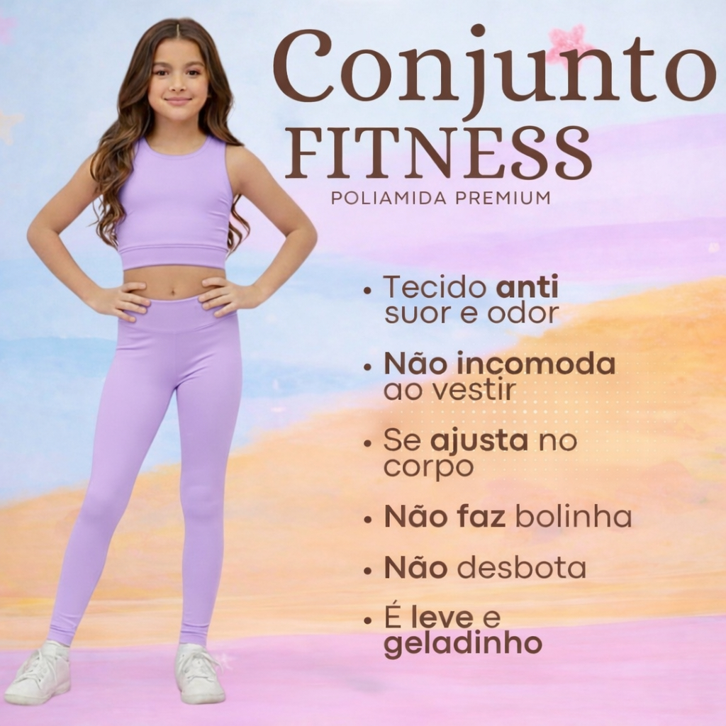 Conjunto Infantil Roupa Ginástica Academia Treino Ballet Calça Top Forrado Poliamida Feminino