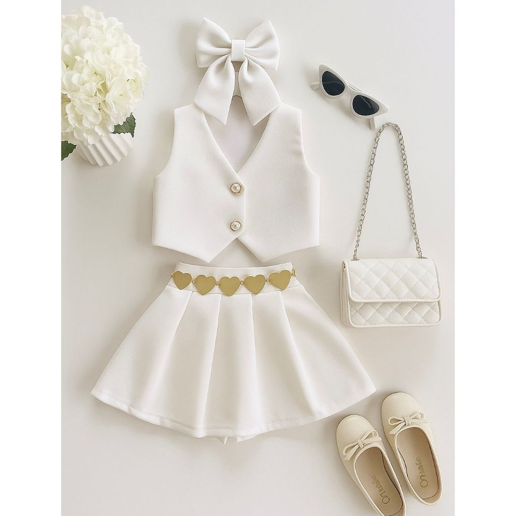 Conjunto Infantil Short Saia e Colete 02 Peças Para Meninas