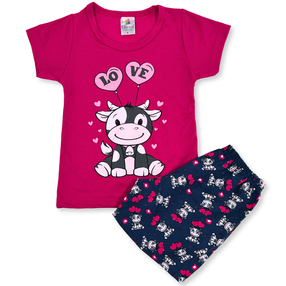 Conjunto Infantil Verão Feminino Menina Vaquinha Love Pink Premium
