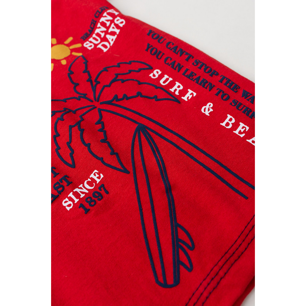 Conjunto Infantil Verão Masculino Menino Com Camiseta 100% Algodão Manga Curta Estampa Praia Bermuda Moletinho Vermelho