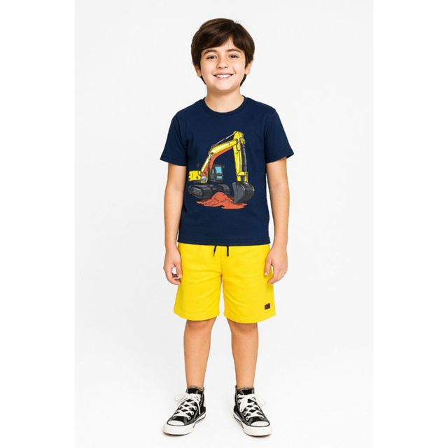 👕 Conjunto Infantil Verão Menino Escavadeira - Trator Tamanho 1 ao 12 anos.