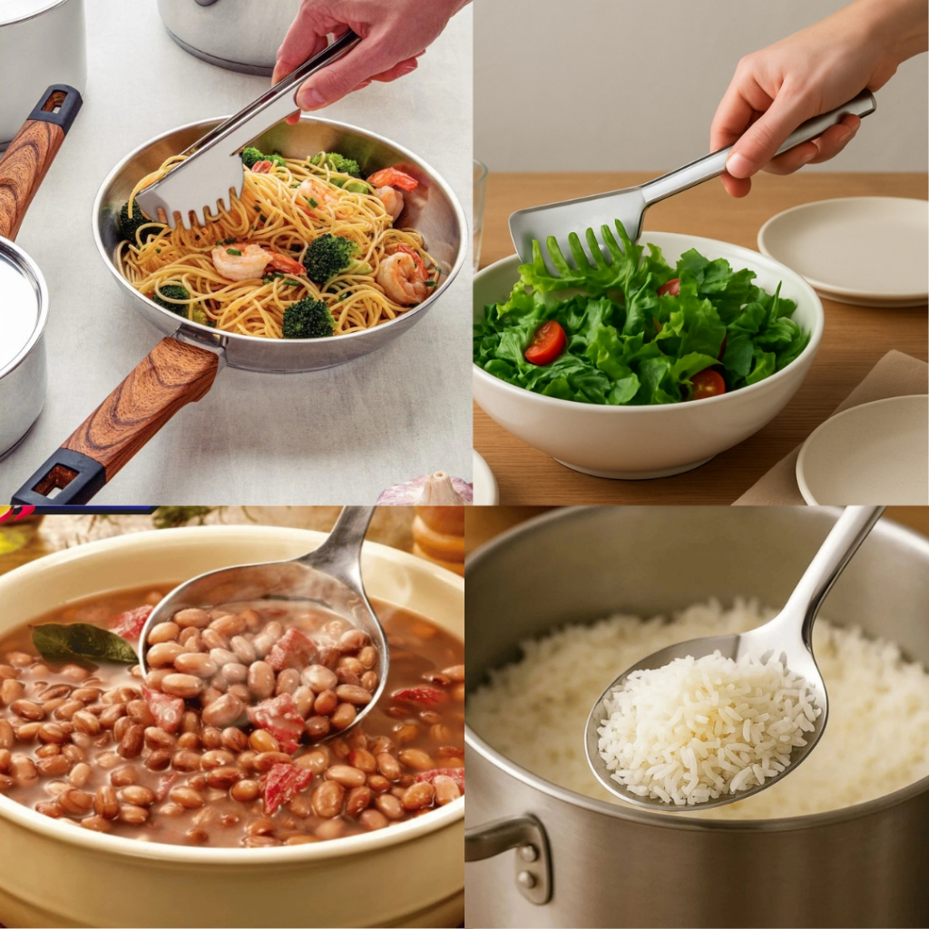 Conjunto Inox 3 Peças Colher de Arroz , Concha Feijão E Pegador de Macarrão Profissional Cozinha, Restaurante Buffet