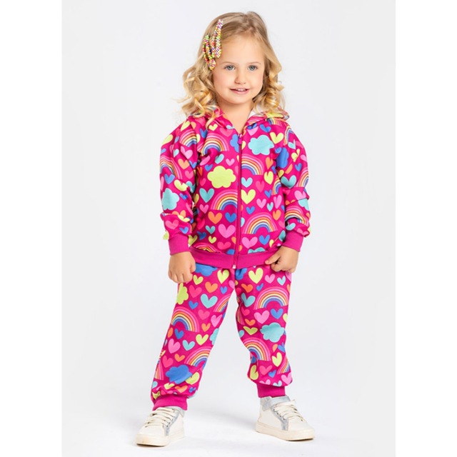 Jaqueta Feito com um tecido de moletom sublimado com felpa 100% poliéster, este casaco é perfeito para enfrentar o frio. Com fechamento em zíper para facilitar na hora de vestir, e um capuz para proteger do vento gelado, sua pequena estará sempre bem protegida. Os punhos e a barra em ribana proporcionam um ajuste confortável e seguro. É uma escolha clássica e versátil que combina com qualquer look de inverno. Calça Acompanhando o casaco, a calça é tão confortável quanto estilosa. Também confeccionada em moletom sublimado com felpa 100% poliéster, oferece o máximo de conforto para sua pequena. Com punho e cós em ribana, garante um ajuste perfeito que não vai atrapalhar os movimentos. Na mesma cor, completa o conjunto de forma elegante e harmoniosa.
