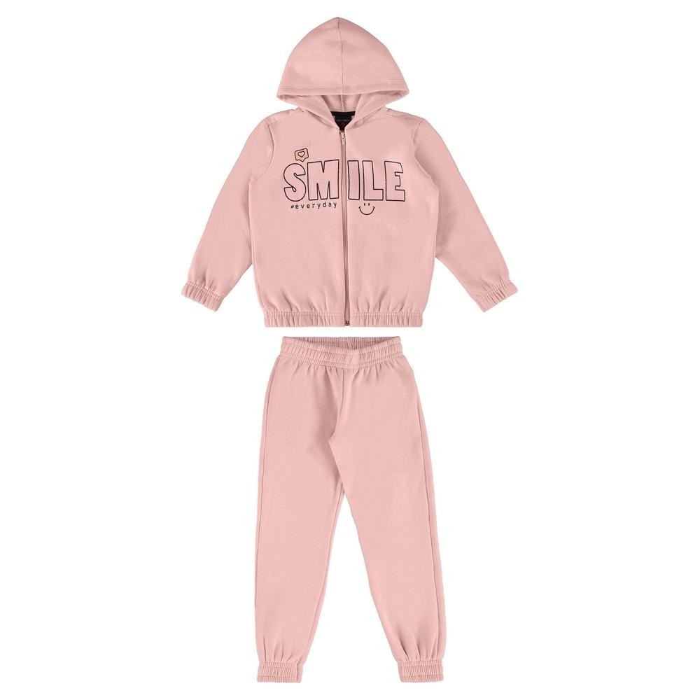 Conjunto infantil para meninas, composto por uma jaqueta e uma calça, ambos em moletom flamê Peluciado. A jaqueta possui abertura por zíper aparente com acabamento embutido no capuz, além disso, possui estampa e elástico na barra e nos punhos, proporcionando melhor ajuste ao corpo, a calça, também possui elástico na cintura e na barra. Peças com cores simples e modelagem básica.Tecido: Jaqueta: Moletom Flamê Peluciado | Calça: Moletom Flamê PeluciadoComposição: CALÇA: 50% algodão e 50% poliéster | JAQUETA: 50% algodão e 50% poliésterModelagem: JustaComprimento Manga: LongaComprimento: LongoForro: NãoCintura: MédiaDecote/Gola: Redondo