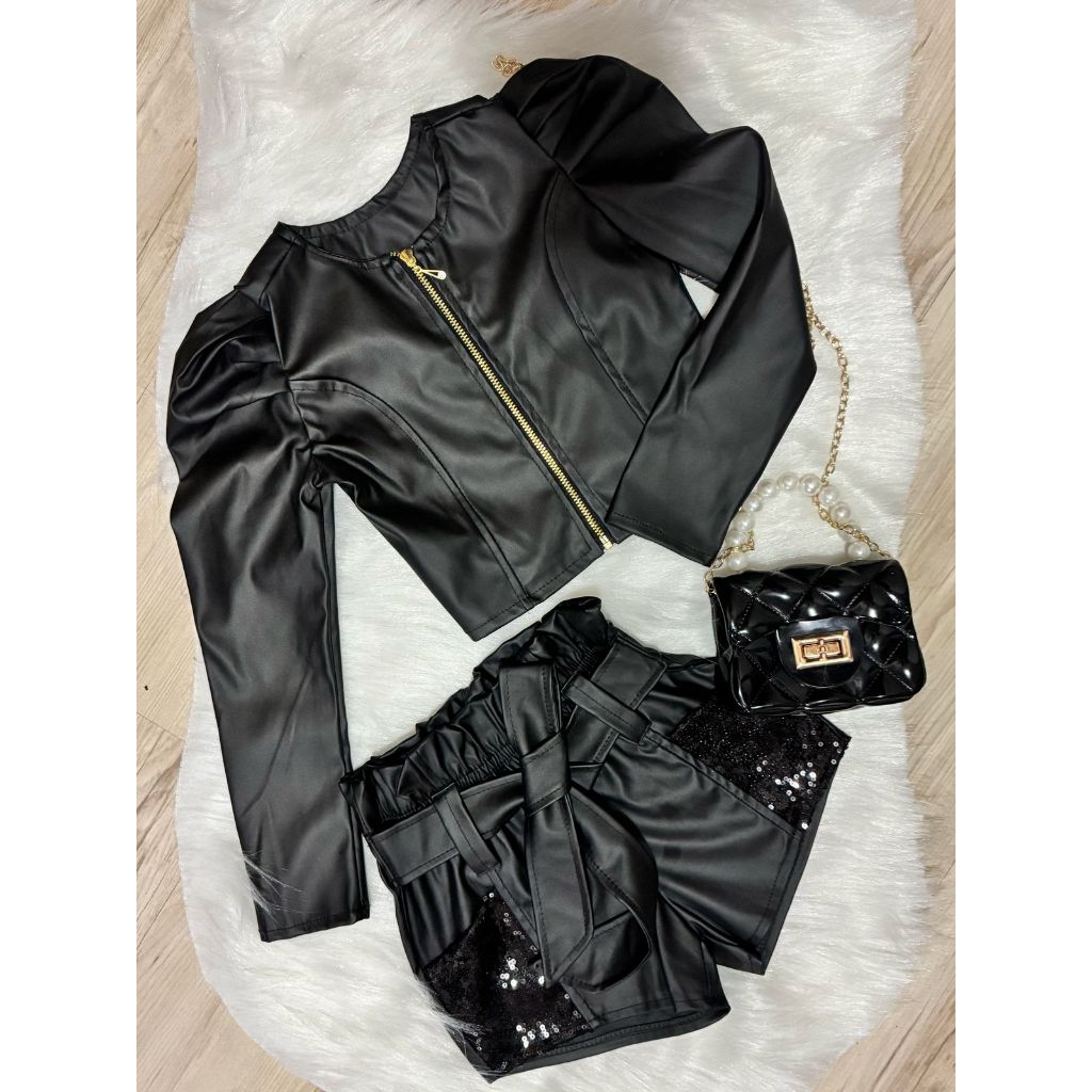 Conjunto Jaqueta e Shorts PAETÊ Corino Fake Infantil 02 ao 10 Anos Meninas