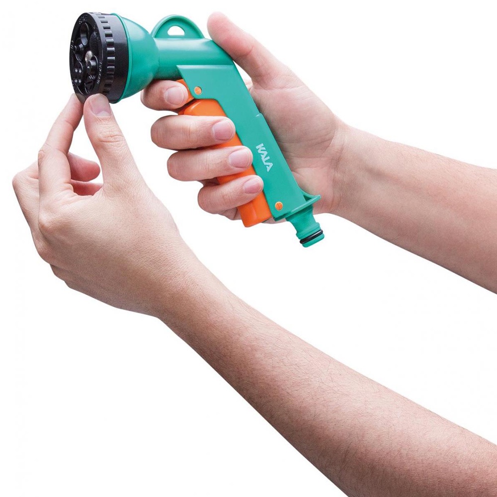 Conjunto Esguicho para Mangueira com 6 Jatos Kala – 4 Pçs Conjunto Esguicho para Mangueira de Jardim da marca Kala com 4 peças para utilização em mangueiras, facilitando e deixando mais praticas as tarefas de irrigação no jardim e hortas. O conjunto é confeccionado em polímeros polipropileno e ABS, nas cores verde e laranja, sendo de fácil montagem, manuseio e utilização. A pistola possui 6 diferentes jatos de água para diversas aplicações. O Conjunto Esguicho para Mangueira com 6 Jatos Kala – 4 Pçsé formado por: - 1 Pistola regulável com 6 jatos; - 1 Engate Rápido; - 1 Engate Rápido Stop; - 1 Conexão para Mangueira 1/2" x 3/4";