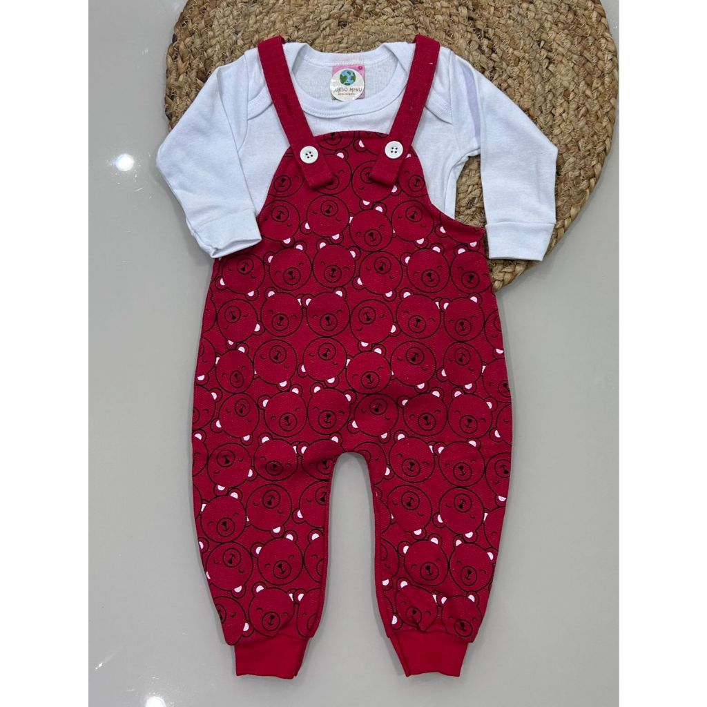 Conjunto composto por duas peças, uma jardineira e um body. Jardineira produzido em moletinho sem felpa (moletom sem a parte flanelada de dentro) com botões que permitem 2 ajustes nos tamanhos das alças. Body confeccionado em ribana 1x1 de alta qualidade e com cores lindas. Todos os modelos com composição 100% algodão. Atenção: os tamanhos indicados não significam a idade da criança. Recomendamos que siga a tabela de medidas abaixo e que compare com alguma roupa da criança antes de realizar a compra. (obs: tamanhos sugestivos ,podendo variar de acordo com o tamanho da criança) *** JARDINEIRA P: largura 24 cm / 40 cm comprimento M: largura 26 cm / 42 cm comprimento G : largura 28 cm / 44 cm comprimento 1 : largura 30 cm / 50 cm comprimento 2 : largura 31 cm / 53 cm comprimento 3 : largura 32 cm / 54 cm comprimento **** BODY P : 19 cm largura / 37 cm comprimento M : 20 cm largura / 39 cm comprimento G : 21 cm largura / 41 cm comprimento 1 : 23 cm largura / 44 cm comprimento 2 : 24 cm largura / 46 cm comprimento 3 : 25 cm largura / 48 cm comprimento OBS: PODEM OCORRER VARIAÇÕES DE ATÉ 1 CM DEVIDO A COSTURA.