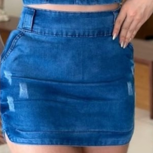 Conjunto Jeans Feminino Cropped e Saia Com Elastano Strech Tamanhos: P -36/38 busto 90cm // cintura 74 a 76cm // Quadril 098cm M -40/42 busto 100cm // cintura 80 a 88cm // Quadril 108cm G -44 busto 108cm // cintura 90 a 94cm // Quadril 116cm GG -46/48 busto 112cm // cintura 94 a 100cm // Quadril 124cm