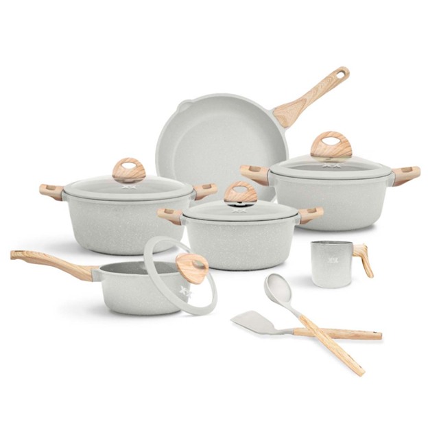 Conjunto Jogo de Panelas 14 Pçs Antiaderente Tampa de Vidro Revestimento de cerâmica