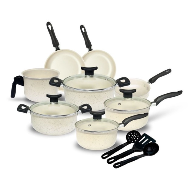Conjunto Jogo de Panelas Elegance Teflon 11 peças Antiaderente Granito