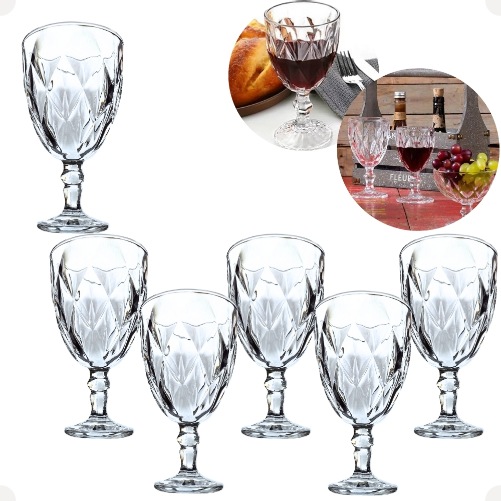 Conjunto Jogo de Taças Diamond de Vidro Transparente Incolor Para Vinho de 260 ml 6 peças Wincy Casa