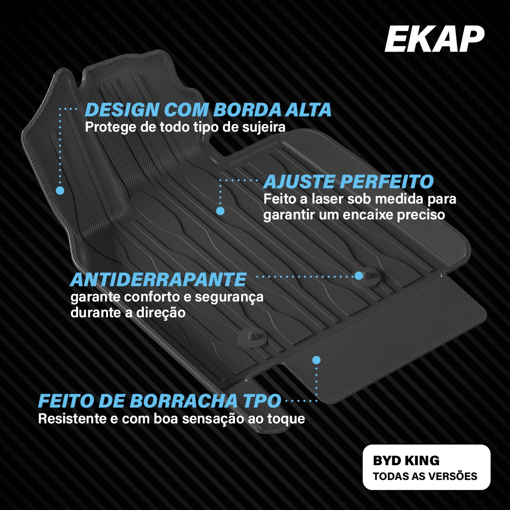 Conjunto Jogo De Tapete Automotivo Bandeja De Borracha Para Carro BYD King Cabine e Porta Malas