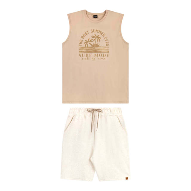 Conjunto Juvenil Menino Surf Mode Beats Bege