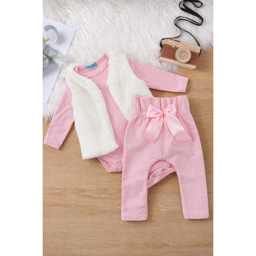 Conjunto Kit 3 Peças Bebê Menina com Body Básico, Calça e Coletinho Forrado para o Inverno Frio