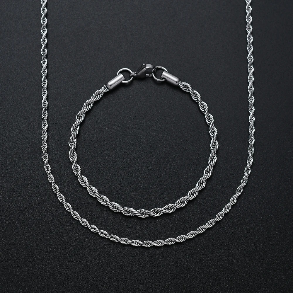 Conjunto Kit cordão colar corrente baiano em aço inoxidável + Pulseira baiana aço inox (Não enferruja nem escurece)
