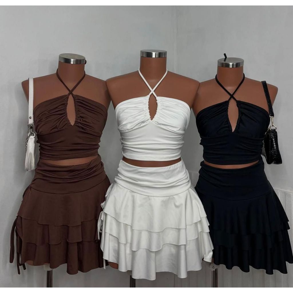 Conjunto em shorts saia 🤎 ✨ Conjunto Lara✨ TAM : Único Poliamida
