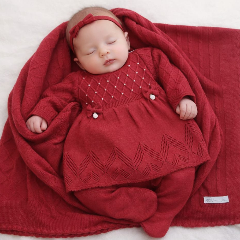 Conjunto Lara Saida Maternidade Menina Luxo Vestido Tricot Manta Calça Recém Nascido