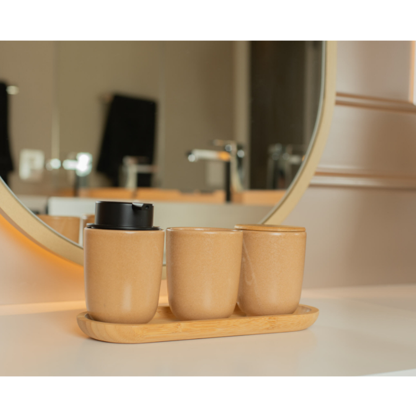 Conjunto Lavabo 3 Peças Banheiro Cerâmica Yoi Osaka Porta Algodão, Escova e Sabonete Liquido