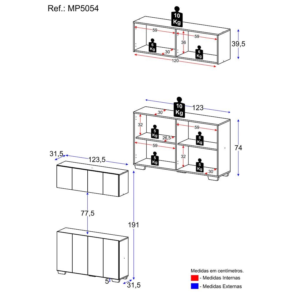 Transforme sua lavanderia num ambiente funcional e elegante com o Conjunto Lavanderia Multiuso Armário Aéreo e Balcão 4 Portas Multimóveis MP5054. Fabricado em MDP (15mm) com acabamento acetinado (cerca de 20% de brilho), garante durabilidade e resistência. Composto por um balcão e um armário aéreo com 4 portas e prateleiras, este kit oferece amplo espaço interno para organizar produtos de limpeza e outros itens de lavanderia. O balcão ainda permite apoiar suas roupas, deixando o ambiente organizado, e possui pés quadrados em polipropileno que oferecem estabilidade e estilo único. O design clean confere um visual moderno e estiloso ao kit. Conteúdo da Embalagem: 1 (um) Balcão 1 (um) Armário Aéreo Manual de Montagem Kit Ferragem Dimensões do produto montado: Armário Aéreo - Altura: 39,5cm | Largura: 123,5cm | Profundidade: 31,5cm Balcão - Altura: 74cm | Largura: 123cm | Profundidade: 31,5cm *Você pode consultar as medidas detalhadas na imagem técnica do produto. *As cores do produto podem sofrer variações de tonalidade de acordo com as configurações do seu dispositivo. Imagem meramente ilustrativa. Decoração não acompanha o produto. O produto será entregue desmontado e não disponibilizamos o serviço de montagem.