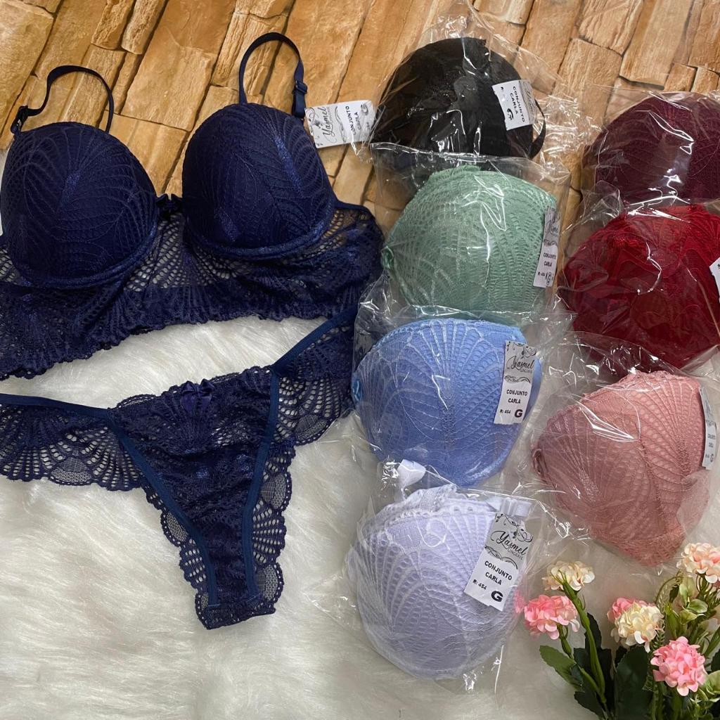 Conjunto de Sutiã e calcinha Aproveite e compre diretamente de quem fabrica. Excelente oportunidade para revenda. Lingeries de ótima qualidade, fabricados em materiais de primeira. Sutiã com bojo e aro, alças reguláveis, para melhor ajuste. Conjuntos em várias cores como nas fotos disponíveis no anúncio, fabricamos em renda de qualidade. Tamanhos: P(40) / M(42) / G(44) / GG(46). Bojo “bolha” tamanho P e M Bojo “casca” tamanho G e GG