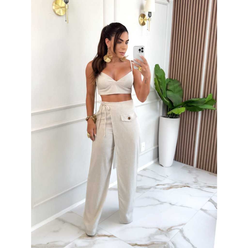 Conjunto linho feminino calça pantalona e cropped tamanhos m ,g e gg