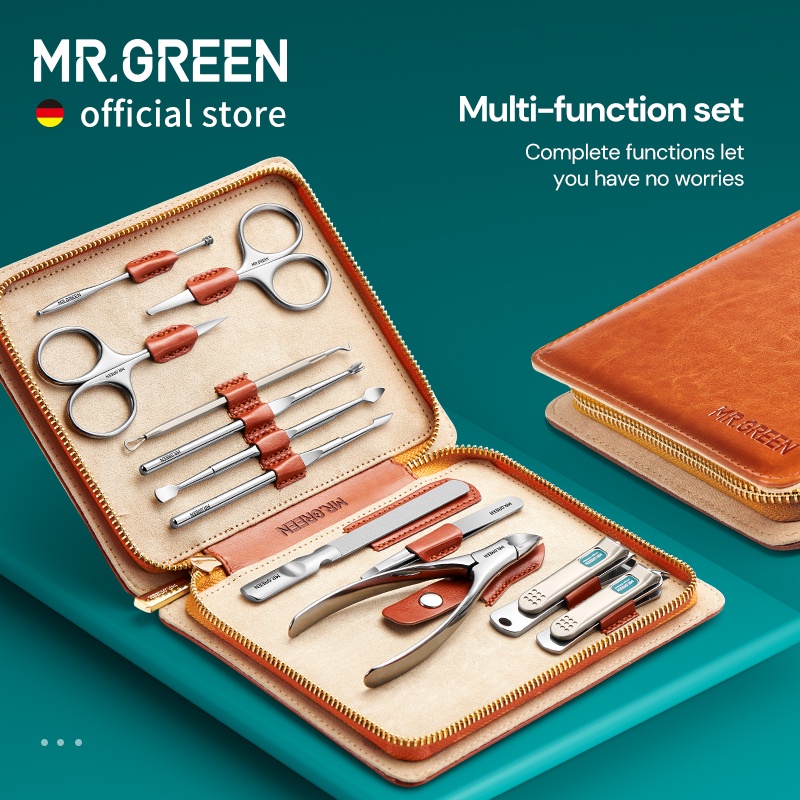 Conjunto Manicure Mr.Green 12 Em 1 Função Completa Kit Profissional Pedicure Aço Inoxidável Conjuntos Com Estojo De Couro Portátil Idéia Presente