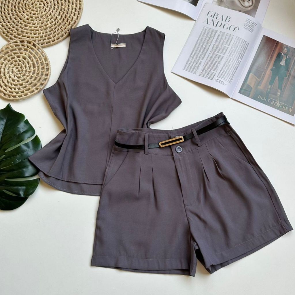 Conjunto marrant feminino de camiseta sem mangas e shorts com cinto