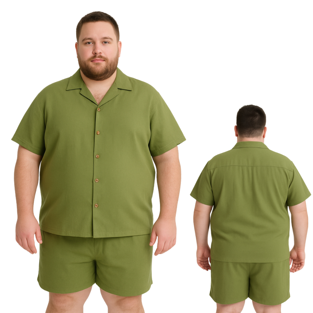 CONJUNTO MASCULINO ADULTO DE SHORTS E CAMISA PLUS SIZE NO VISCOSE G1,G2,G3 CORES LISAS PRETO BRANCO