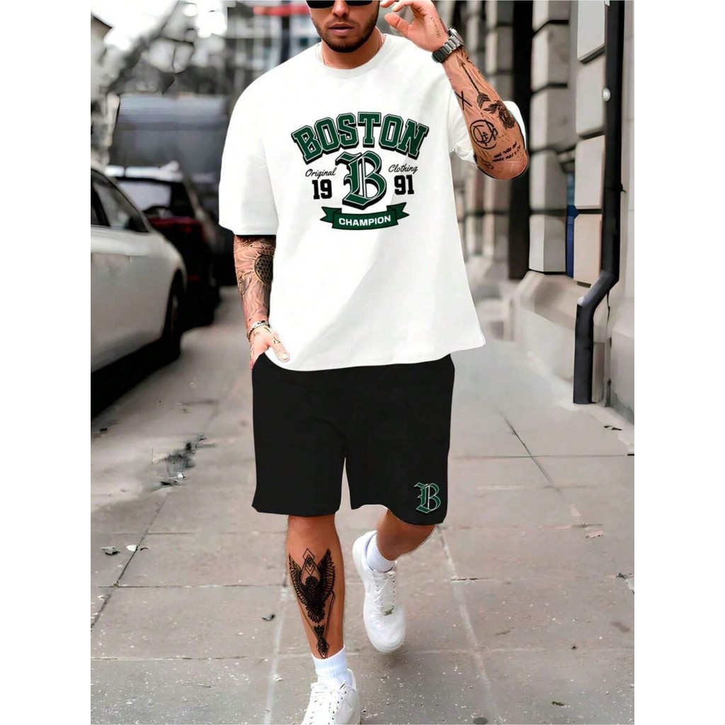Conjunto Masculino Boston 1991 Camiseta Streetwear Masculina + Bermuda Moletom Estampada Kit Camiseta + Short Moletom
