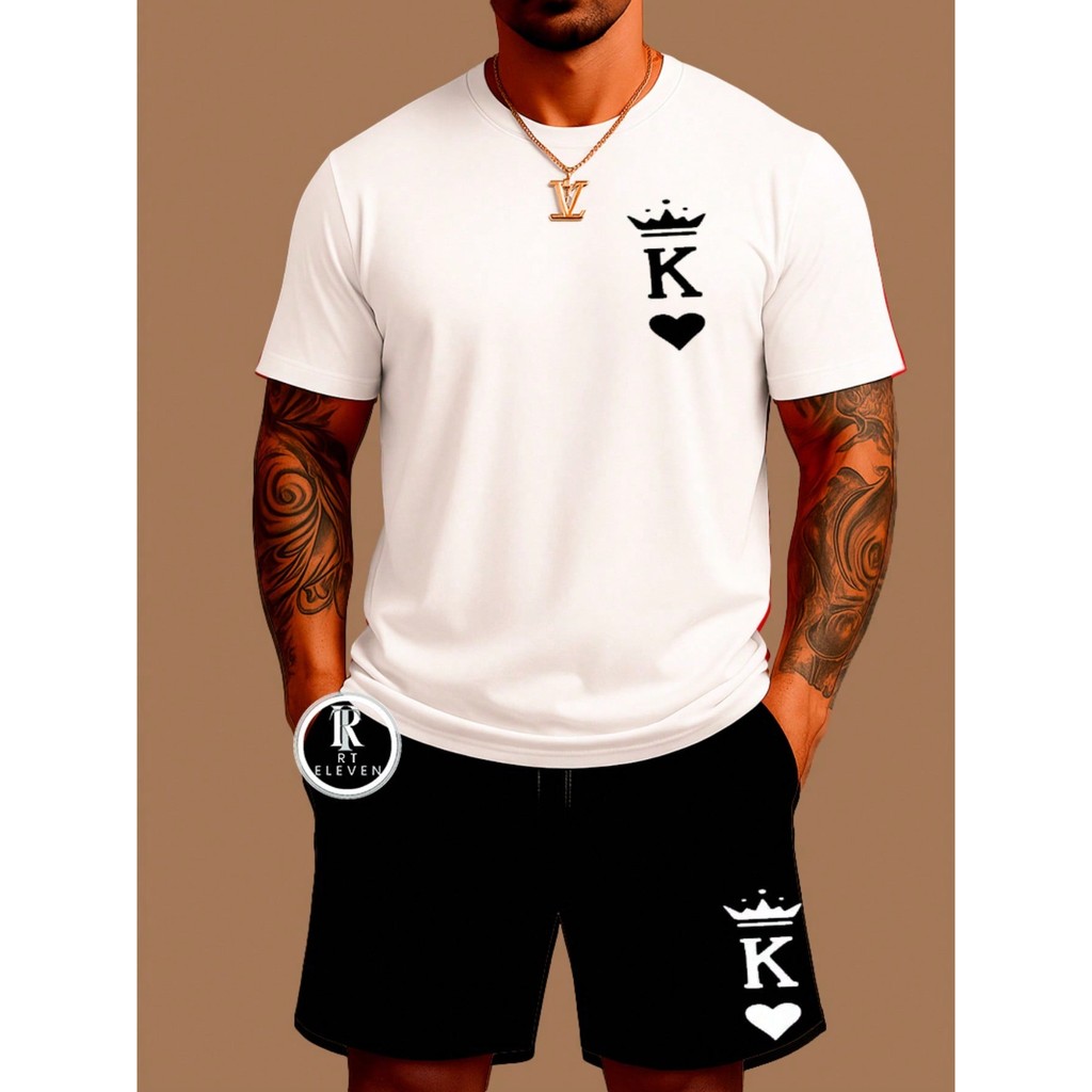 Conjunto Masculino K King Camiseta Streetwear Masculina + Bermuda Moletom Estampada Kit Camiseta + Short Moletom