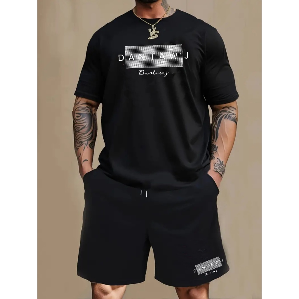 Conjunto Masculino Short Moletom + Camiseta Kit Bermuda Camisa Dantaw'J Bolinha