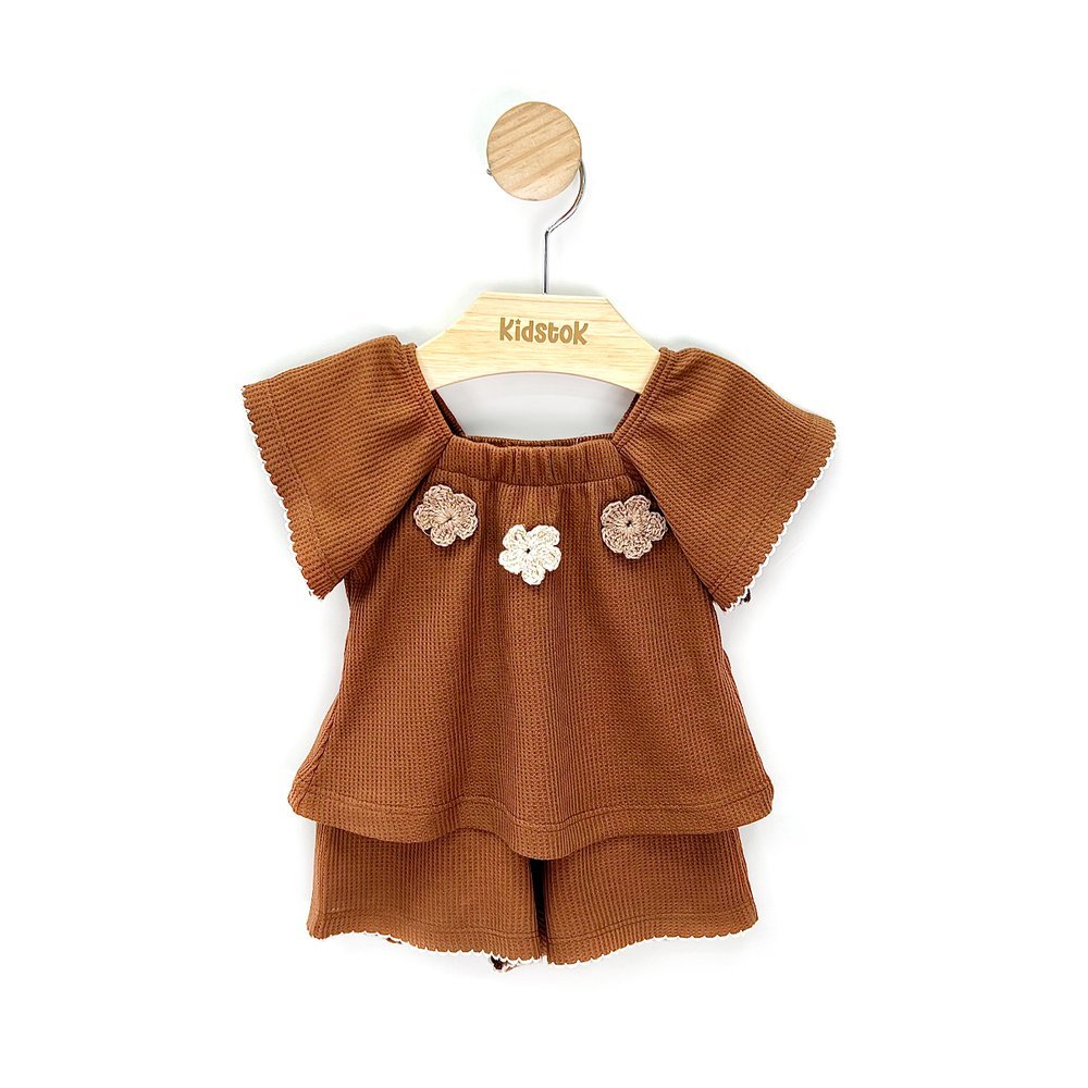 Conjunto Menina Blusa e Short Waffle Flores Bordadas - Kidstok