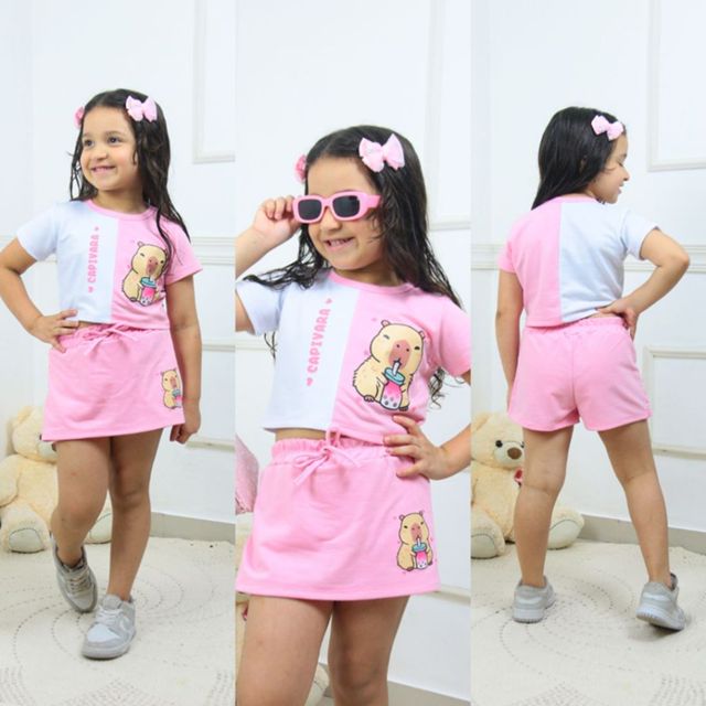 CONJUNTO MENINA INFANTIL JUVENIL ESTAMPA CAPIVARA ROSA TAMANHOS 2 A 14
