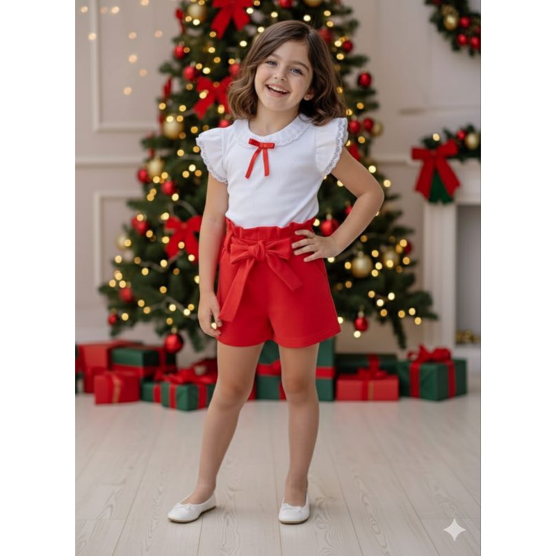 Onde comprar Conjunto menina infantil Natal malha crepe short e blusa?