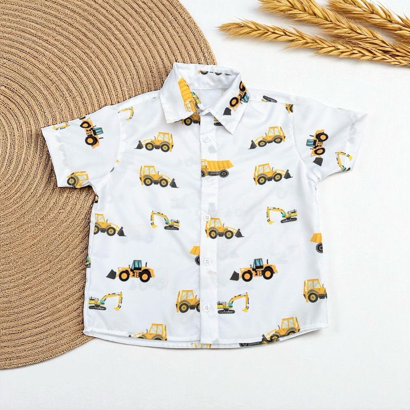 conjunto menino aniversario social modelo short brim trator amarelo construção tratores