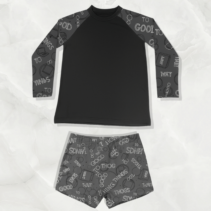 Conjunto Menino Blusa Manga Estampada + Sunga Adolescente Proteção UV50+ 44-ME