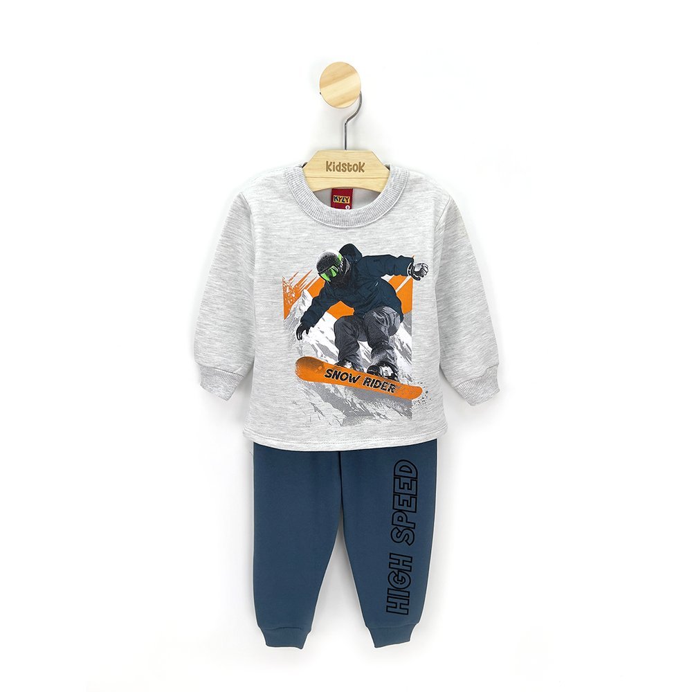 Conjunto Menino Blusão e Calça Moletom Snow Bord - Kyly O conjunto é de moletom flanelado e quentinho. O blusão possui gola redonda, manga longa com punho e apresenta estampa esportiva de Snow Board. A calça possui interferências escritas na perta, cós em elástico, pés com punhos, proporcionando um visual super confortável aos pequenos. Principais características: Conjunto flanelado e quentinho; Modelagem padrão, super confortável; Punho nas mangas que proporciona mais aquecimento; Estampa colorida esportiva; Indicado para uso diário em dias mais frios, lazer e passeios. Características Gerais do Produto: • Composição Parte de Baixo: 100% algodão • Composição Parte de Cima: 100% algodão • Cor: Marinho, Cinza, Vermelho • Gênero: Masculino • Fechamento: Cós em elástico • Manga: Longa com punho • Modelagem: Normal • Outros: Conforto garantido! Modelagem padrão. Consulte a tabela de medidas.